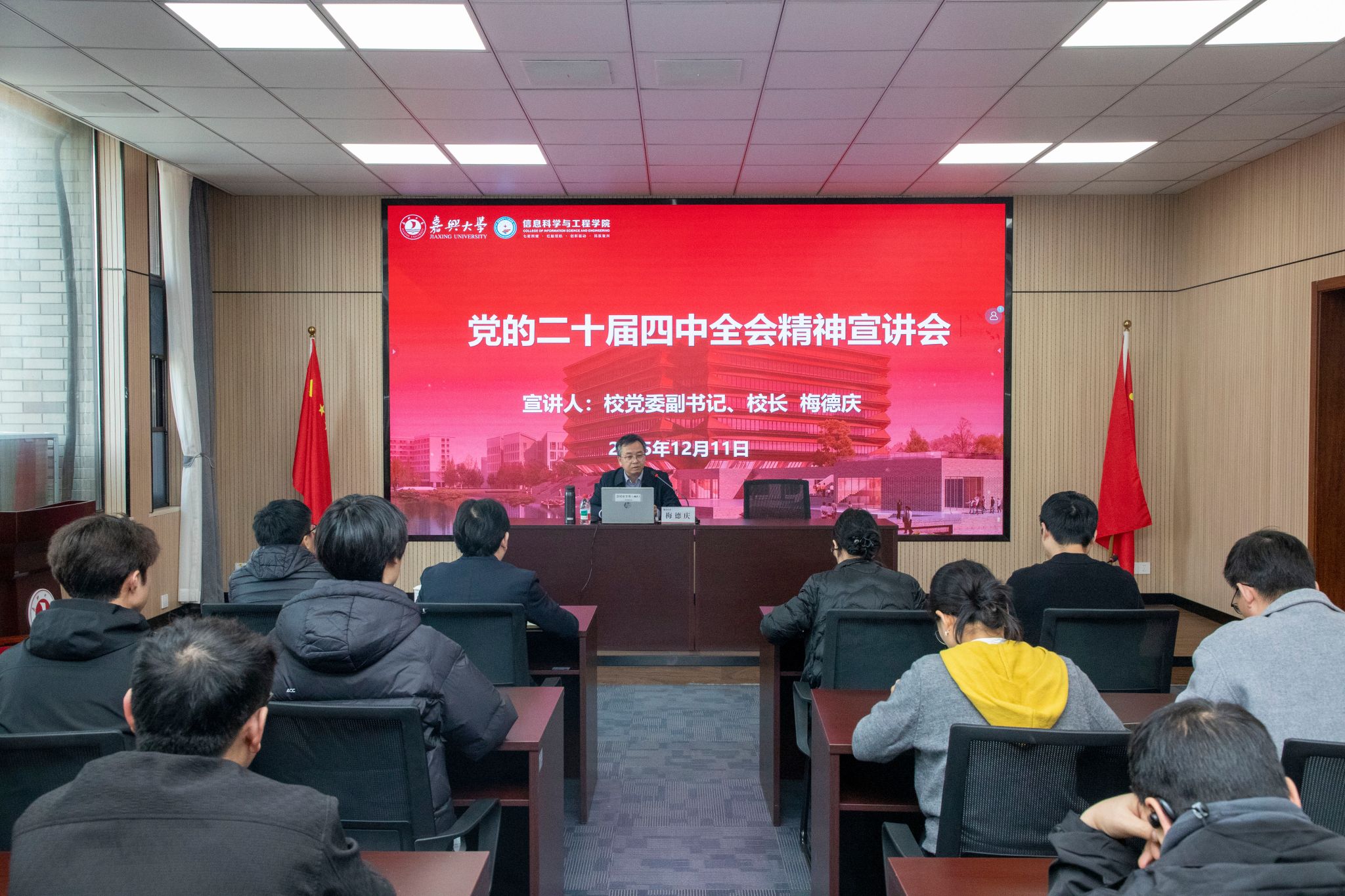 提出三点期望:一是领导班子要深入学习全会精神,紧扣数字化发展趋势与国家战略需求,践行“学科建在产业上、专业建在学科上”的理念,科学编制并实施学院“十五五”发展规划;二是教师要大力弘扬教育家精神,坚守立德树人根本任务,坚持“立地顶天”,既推动科研成果转化、攻关关键核心技术,又培养兼具创新精神与家国情怀的高素质人才;三是同学们要坚定理想信念,传承红色基因,将个人成长融入强国建设、民族复兴的伟大事业,勤学苦练、积极投身科技创新,努力成长为堪当大任的时代新人。